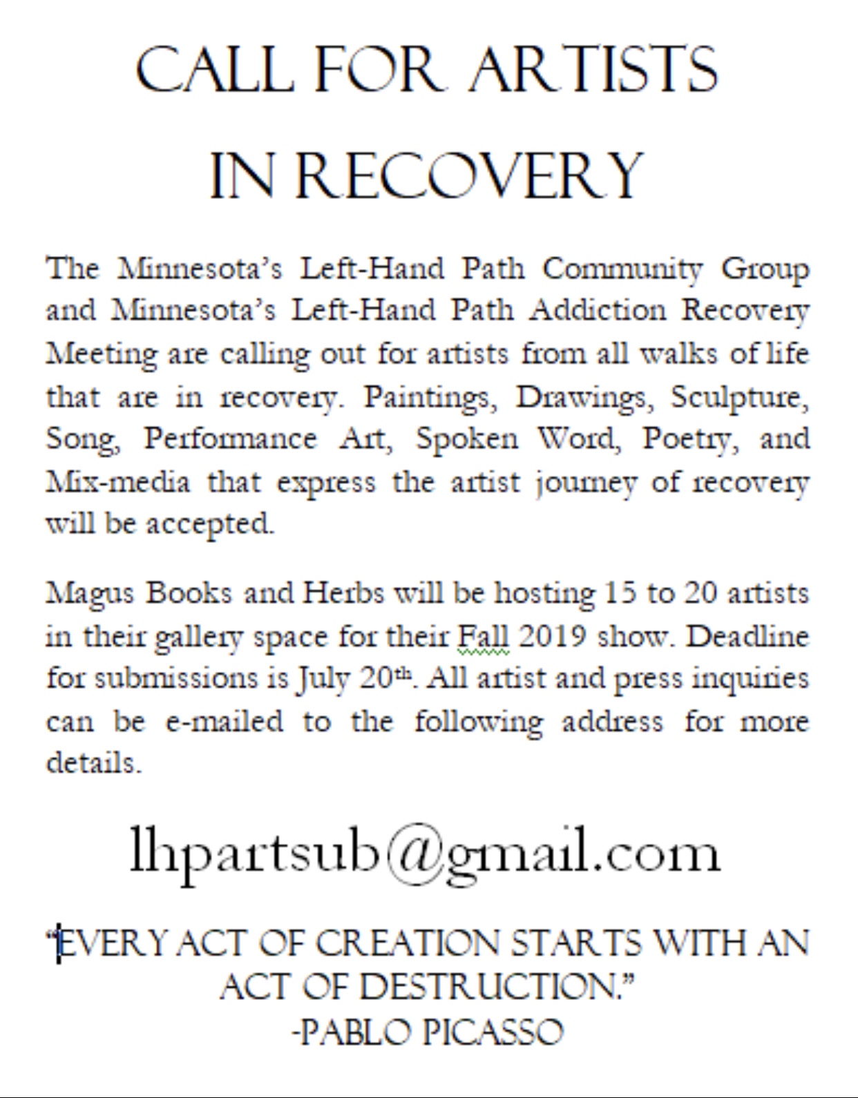 This was a transformational experience. It was an experience I could not have done without the help of my friends Ryan Soberg and Markus Ironwood. I could not have done this without the help of Magus Books and Herbs in Minneapolis, Minnesota. I could not have accomplished this without each of the artists who took the risk to step out of the shadows and gave of themselves to create the work that made healing happen. This would have been impossible without the people who decided to go out on a cold and wet autumn day to appreciate the work of others.