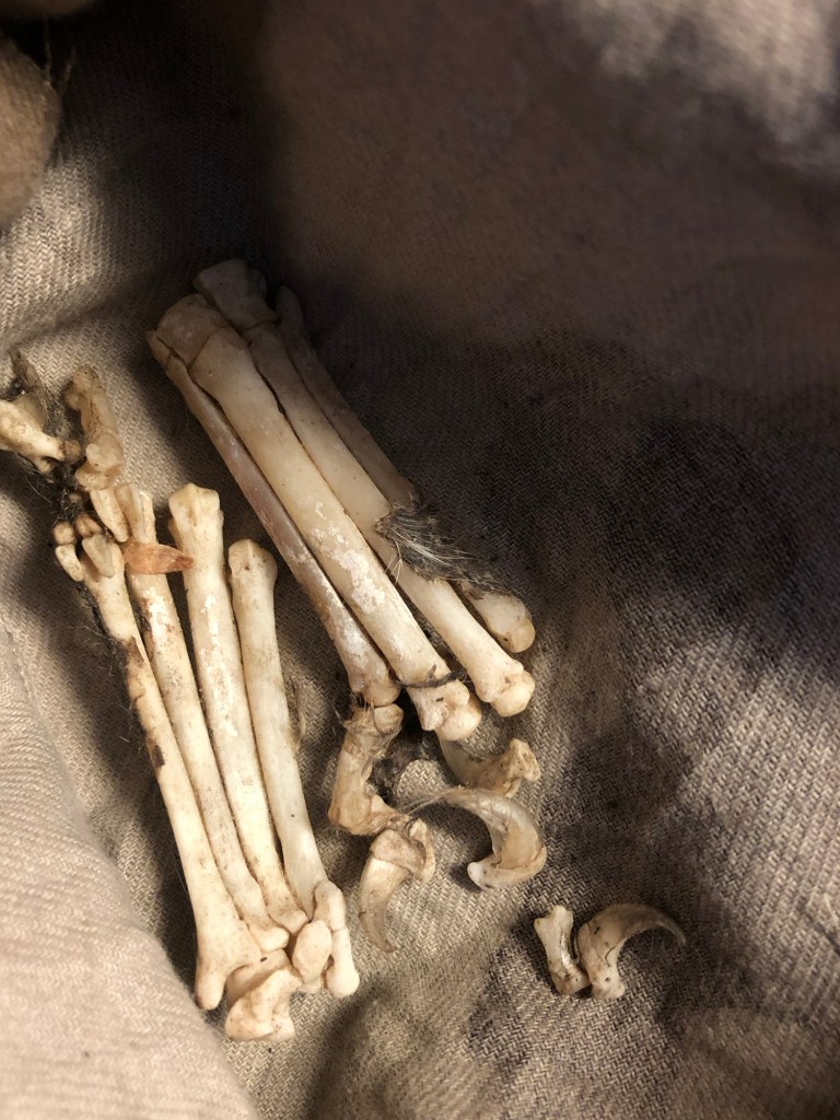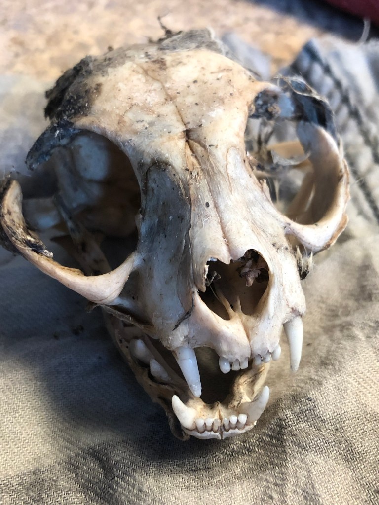 My boyfriend found this cat’s skeleton curled up between boards at a job site. We named him Ikea, because he came in pieces.